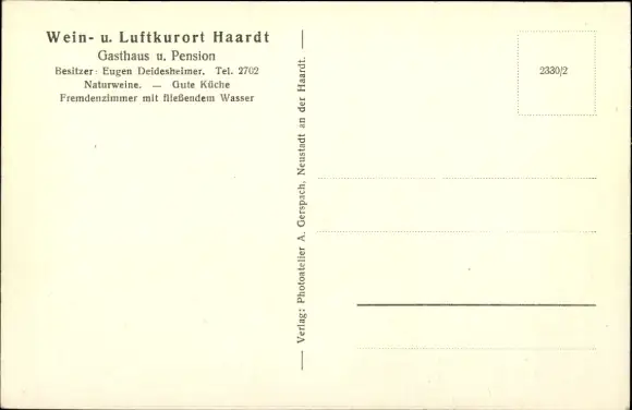 Ak Haardt an der Weinstraße Neustadt a. d. W., Gasthaus und Pension Eugen Deidesheimer
