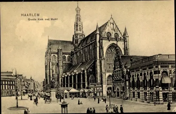 Ak Haarlem Nordholland Niederlande, Groote Kerk met Markt
