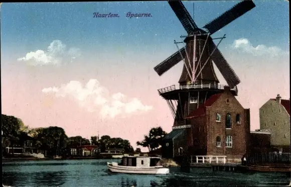 Ak Haarlem Nordholland Niederlande, Spaarne, Molen