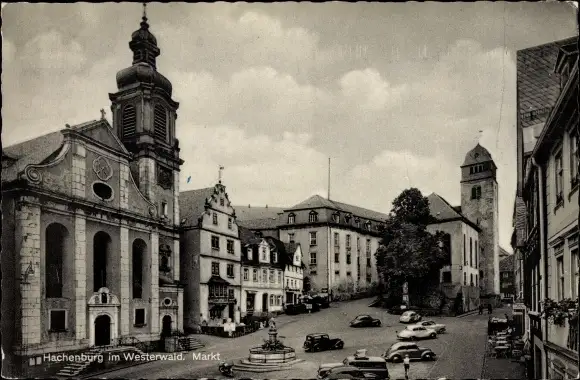 Ak Hachenburg im Westerwald, Markt, Kirche