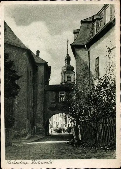 Ak Hachenburg im Westerwald, Tordurchgang, Kirchturm