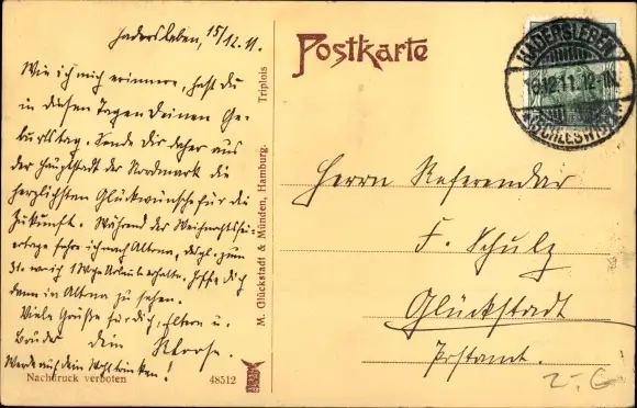 Zustand, siehe Scan, gelaufen, 1911 - ca 14 cm X 9 cm
