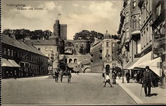 Ak Hälsingborg Helsingborg Schweden, Terrassen med Kärnan, Turm