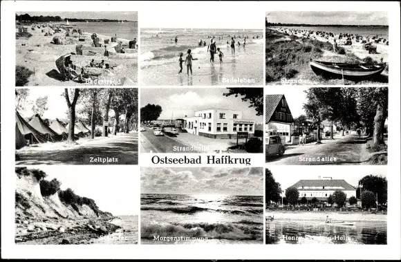 Ak Haffkrug Scharbeutz Ostholstein, Badestrand, Zeltplatz, Strandallee, Strandhalle, Morgenstimmung