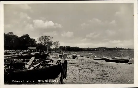 Ak Haffkrug Scharbeutz Ostholstein, Motiv am Strande, Boote