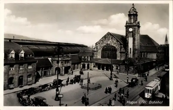 Ak Hagen in Westfalen, Bahnhof, Straßenbahn, Autos