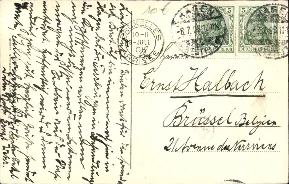 Zustand, siehe Scan, gelaufen, 1908 - ca 14 cm X 9 cm