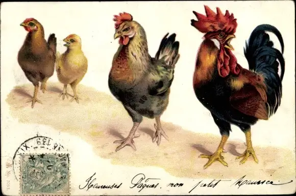 Ak Hahn und Hühner