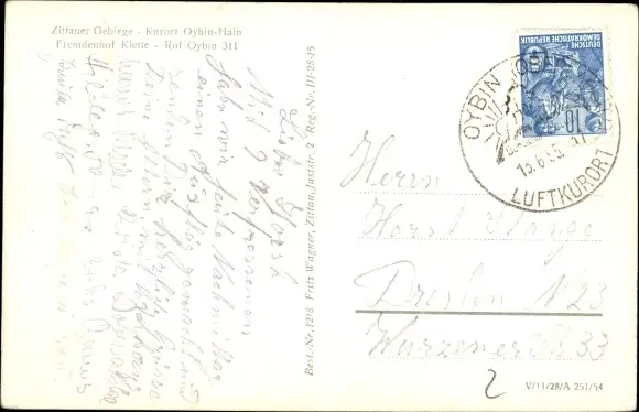 Zustand, siehe Scan, gelaufen, 1955 - ca 14 cm X 9 cm