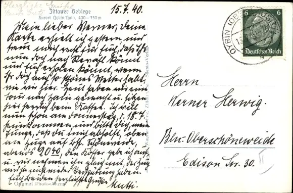 Zustand, siehe Scan, gelaufen, 1940 - ca 14 cm X 9 cm