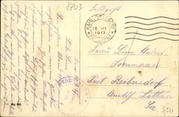 Zustand, siehe Scan, gelaufen, 1917 - ca 14 cm X 9 cm