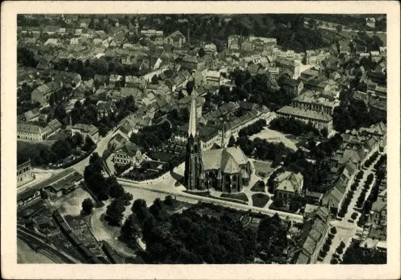 Ak Hainichen in Sachsen, Fliegeraufnahme, Kirche, Teilansicht
