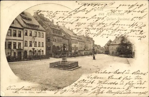 Ak Hainichen in Sachsen, Gellert Denkmal, Platz