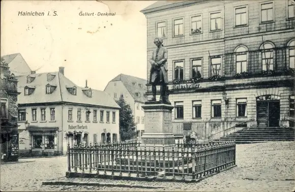 Ak Hainichen in Sachsen, Gellert Denkmal, Rathaus