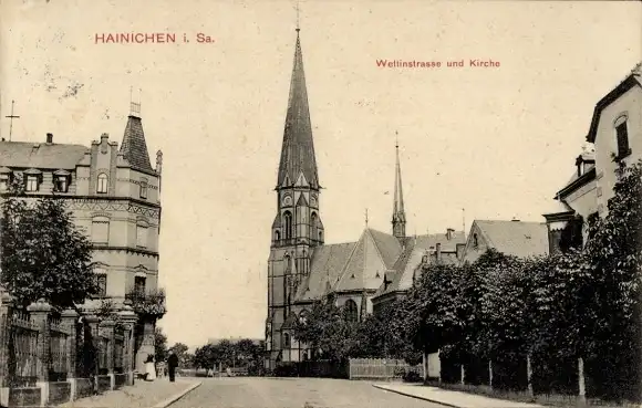 Ak Hainichen in Sachsen, Wettinstraße, Kirche