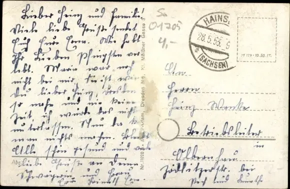 gelaufen 1953, Briefmarke entfernt, sehr guter Zustand