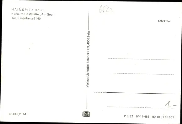 Ak Hainspitz in Thüringen, Konsum-Gaststätte Am See