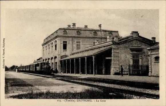 Ak Haiphong Vietnam, Bahnhof, Eisenbahn