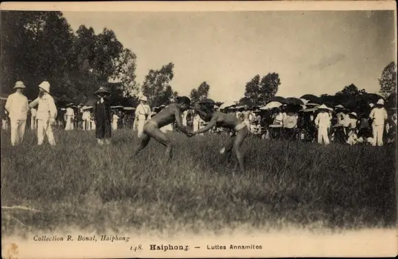 Ak Haiphong Vietnam, Luttes Annamites, Kämpfende Männer
