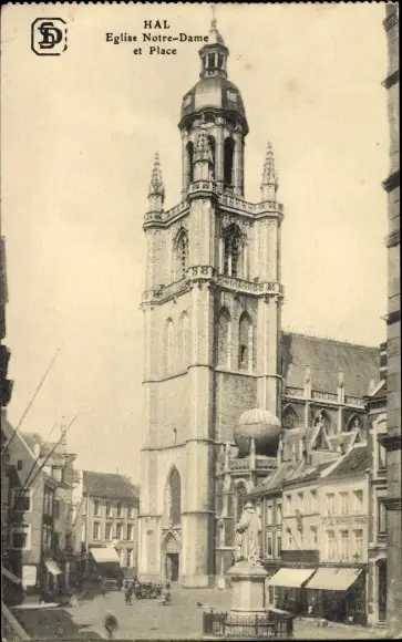 Ak Hal Flämisch Brabant Flandern, Eglise Notre-Dame et Place