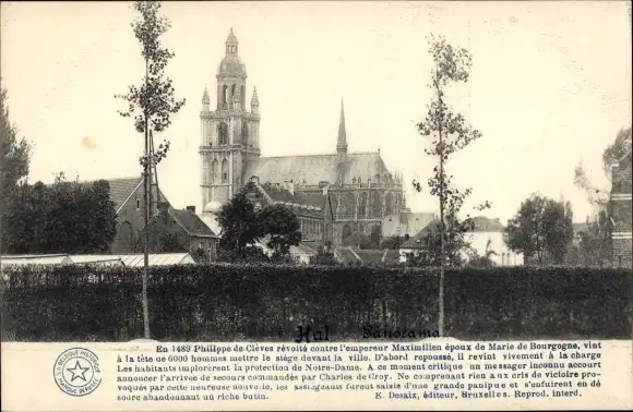 Ak Hal Flämisch Brabant Flandern, Panorama, Kirche