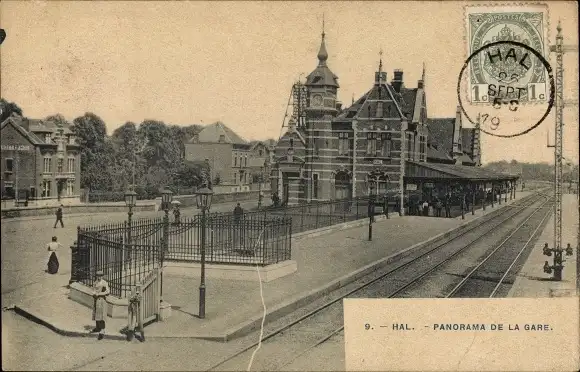 Ak Hal Flämisch Brabant Flandern, Panorama de la Gare