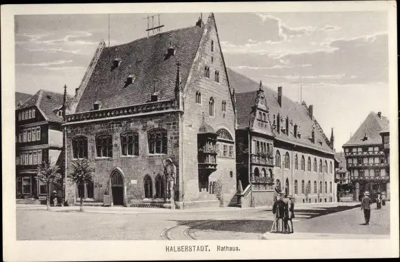 Ak Halberstadt Sachsen Anhalt, Rathaus, Roland