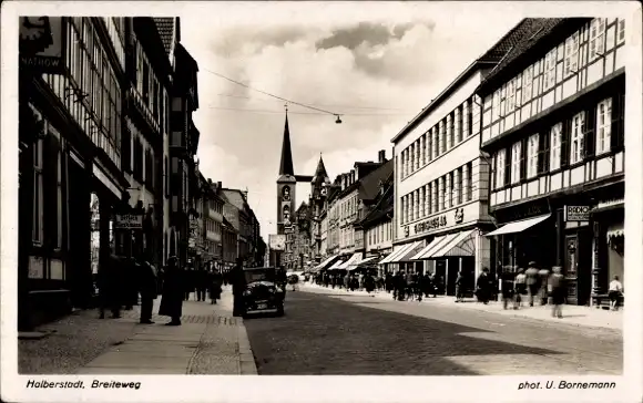 Ak Halberstadt am Harz, Breiteweg, Geschäfte
