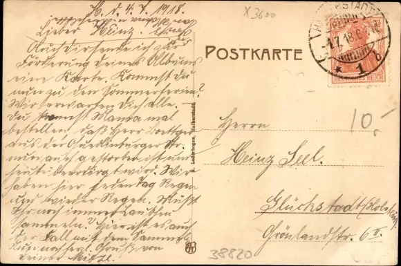 Zustand, siehe Scan, gelaufen, 1918 - ca 14 cm X 9 cm