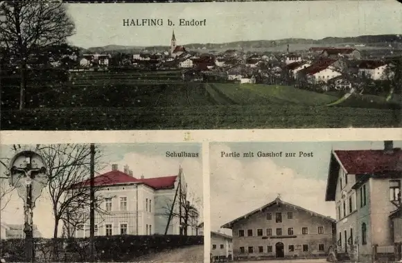 Ak Halfing Oberbayern, Schulhaus, Gasthof zur Post