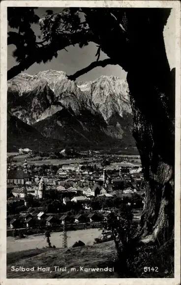 Ak Hall in Tirol, Gesamtansicht, Karwendel