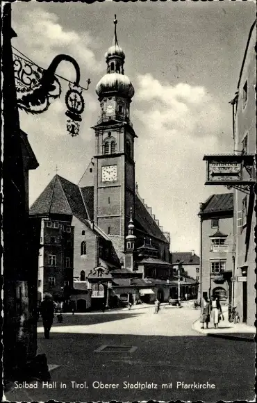 Ak Hall in Tirol, Oberer Stadtplatz, Pfarrkirche