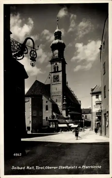 Ak Hall in Tirol, Oberer Stadtplatz mit Pfarrkirche