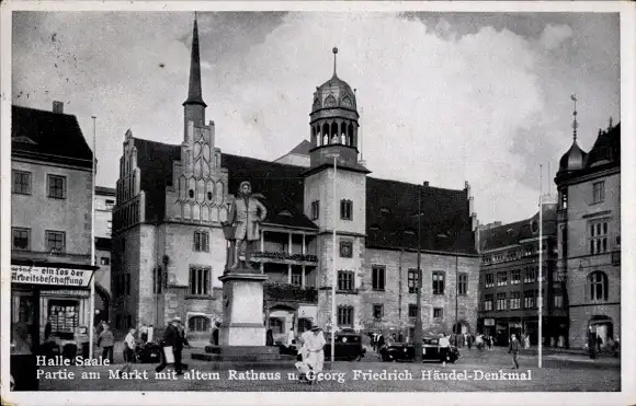 Ak Halle an der Saale, Markt mit altem Rathaus und Händel-Denkmal