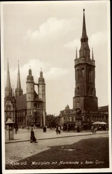 Ak Halle an der Saale, Marktplatz, Marktkirche, Roter Turm