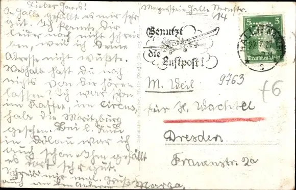 gelaufen 1927, Eckknick rechts oben, sonst guter Zustand