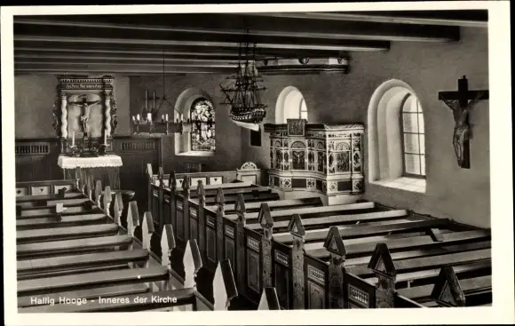 Ak Hallig Hooge in Nordfriesland, Inneres der Kirche