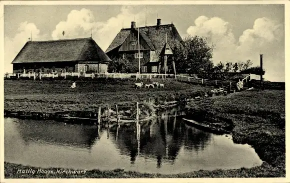 Ak Hallig Hooge in Nordfriesland, Kirchwarf