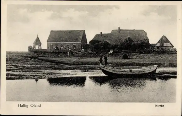 Ak Hallig Oland Nordfriesland, Kirche, Boot