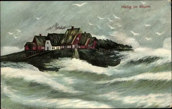 Ak Hallig im Sturm
