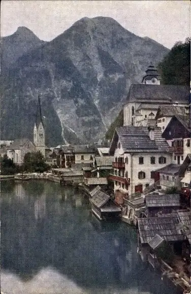 Ak Hallstatt in Oberösterreich, Hirlatz, Kirche, Teilansicht der Stadt