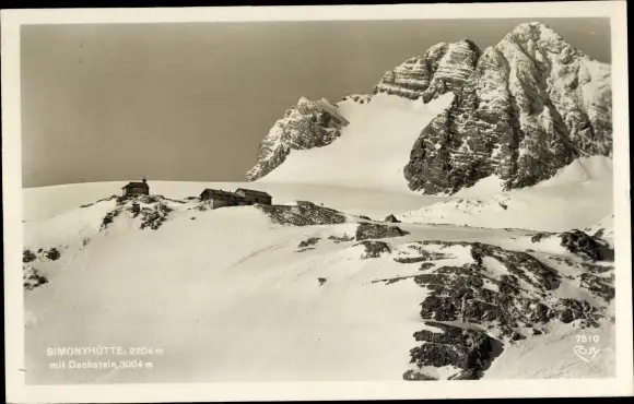 Ak Hallstatt in Oberösterreich, Simonyhütte, mit Dachstein