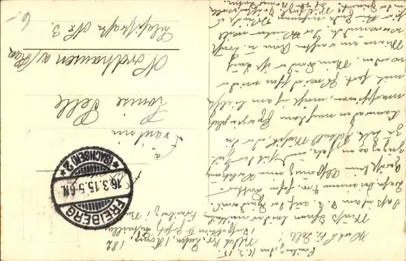 Zustand, siehe Scan, gelaufen, 1915 - ca 3 cm X 5 cm