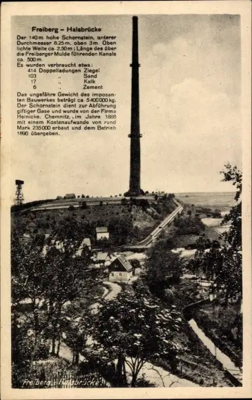 Ak Halsbrücke in Sachsen, Hohe Esse, 140 Meter hoher Schornstein