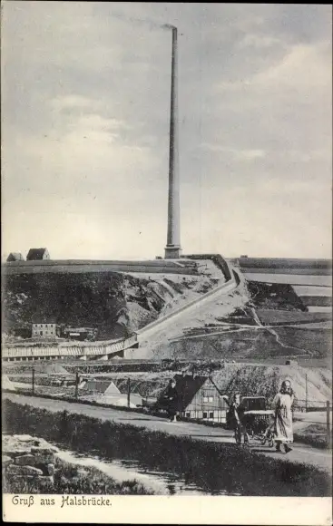 Ak Halsbrücke in Sachsen, Schornstein, Hohe Esse