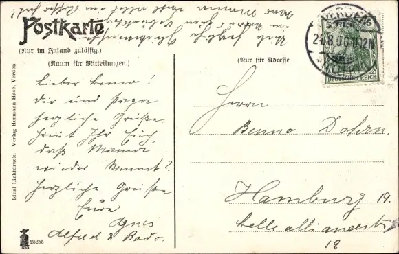 Zustand, siehe Scan, gelaufen, 1906 - ca 14 cm X 9 cm