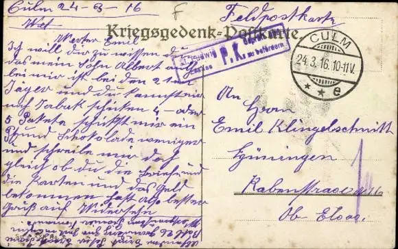 Zustand, siehe Scan, gelaufen, 1916 - ca 5 cm X 3 cm