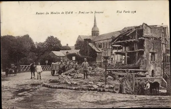 Ak Ham Somme, Ruines du Moulin, Pont sur la Somme, Kriegszerstörung 1. WK