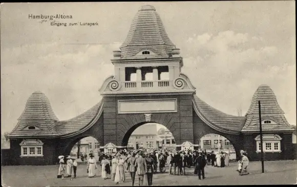 Ak Hamburg Altona, Eingang Lunapark, Passanten