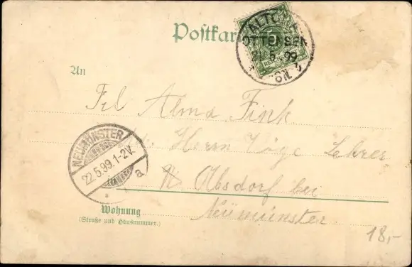 Zustand, siehe Scan, gelaufen, 1899- Inh. H. Madsen - ca 14 cm X 9 cm